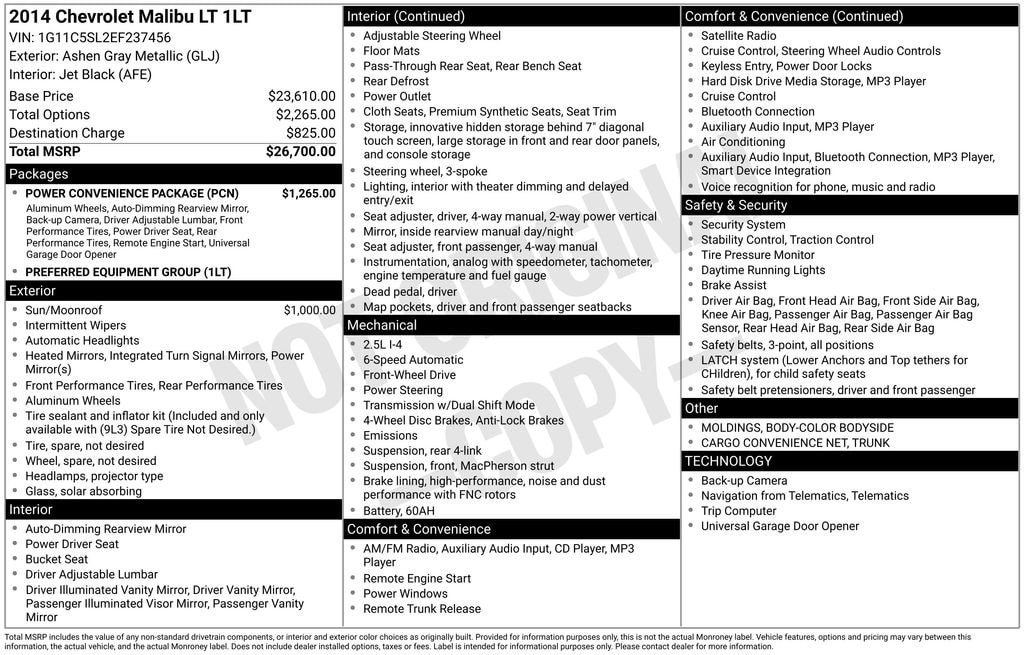 Ashen Gray Metallic 2014 Chevrolet Malibu LT Black Cloth. Odometer is 55387 miles below market average! 25/36 City/Highway MPG