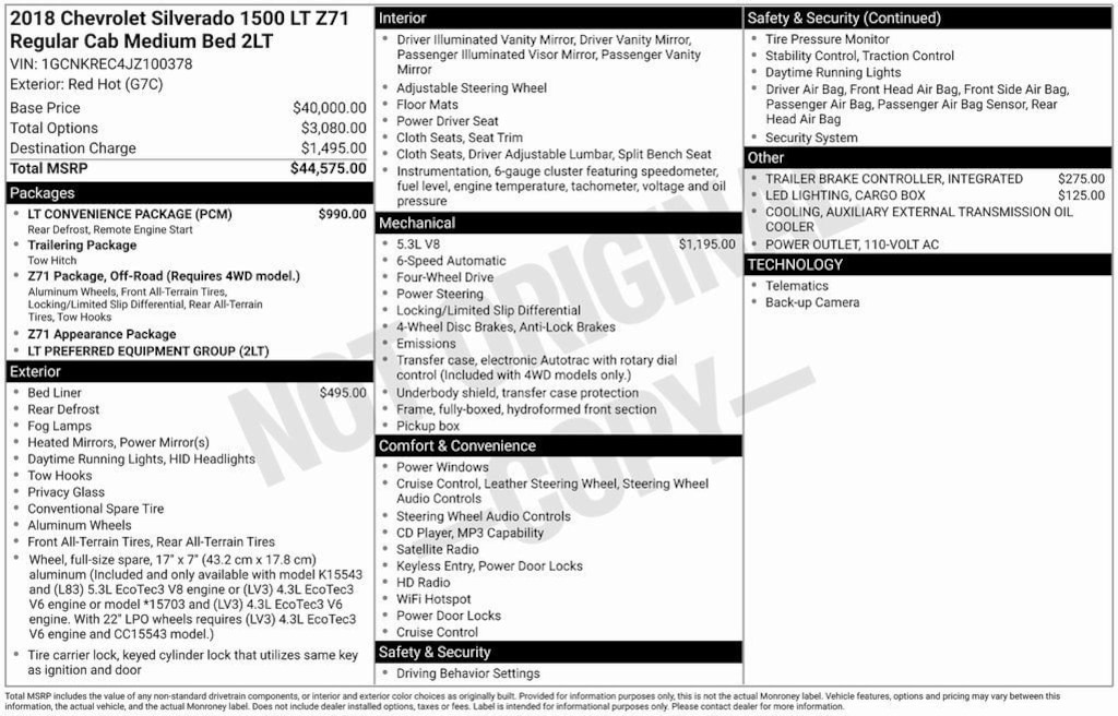 Red Hot 2018 Chevrolet Silverado 1500 LT 6-Speed Automatic Electronic with Overdrive, 4WD, Black Cloth.