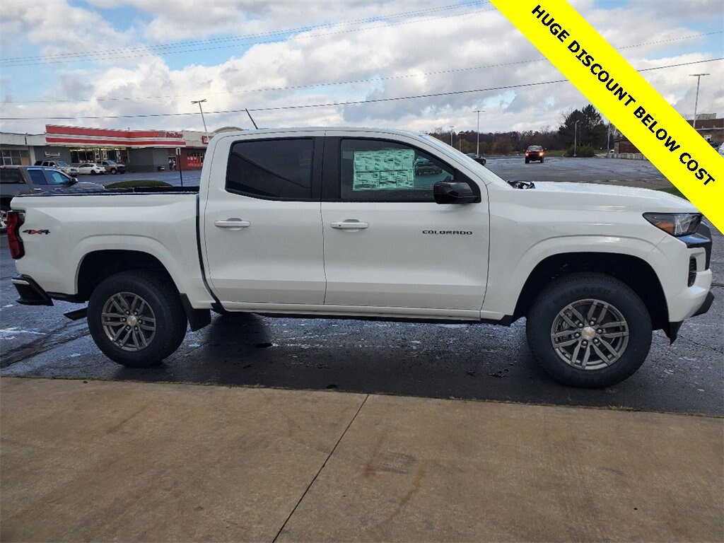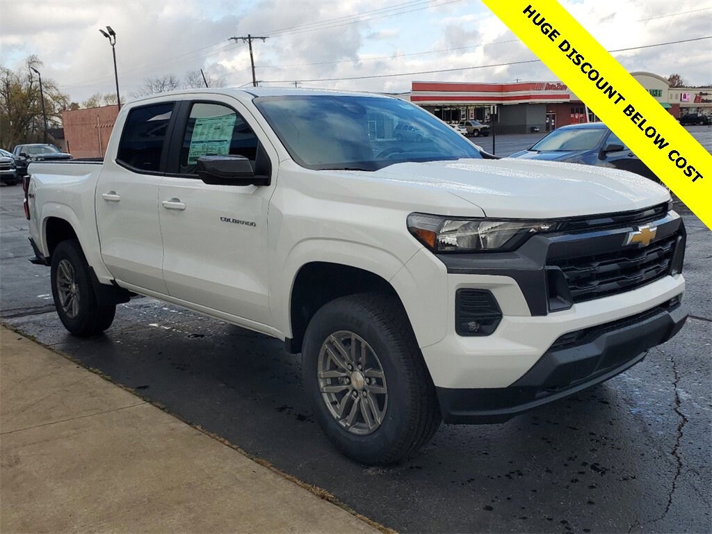 2024 Chevrolet Colorado LT Summit White 4WD, 220 Amp Generator, 3.42 Rear Axle Ratio, 4-Way Manual Passenger Seat Adjuster, 4-Wheel Disc Brakes, 6 Speakers, 6-Speaker Audio System Feature, 6-Way Manual Driver Seat Adjuster, 8-Way Power Driver Seat Adjuster, ABS brakes, Air Conditioning, Alloy wheels, AM/FM radio: SiriusXM, Appearance Engine Cover, Apple CarPlay/Android Auto, Auto High-beam Headlights, Automatic Emergency Braking, Automatic Locking Rear Differential, Black Spray-On Bedliner w/Chevrolet Logo, Brake assist, Bumpers: body-color, Chevy Safety Assist, Cloth Seat Trim, Compass, Delay-off headlights, Driver & Front Passenger Illuminated Visors, Driver door bin, Driver vanity mirror, Dual front impact airbags, Dual front side impact airbags, Dual-Zone Automatic Air Conditioning, Electronic Automatic Cruise Control, Electronic Stability Control, EZ-Lift & Lower Tailgate, Following Distance Indicator, Forward Collision Alert, Front anti-roll bar, Front Bucket Seats, Front Center Armrest, Front LED Fog Lamps, Front Passenger Seatback Map Pocket, Front Pedestrian & Bicyclist Braking, Front reading lights, Front wheel independent suspension, Heated Driver & Front Passenger Seats, Heated Power-Adjustable Outside Mirrors, Heavy-Duty Trailering Package, Illuminated entry, Inside Rear-View Auto-Dimming Mirror, Integrated Trailer Brake Controller, IntelliBeam Automatic High Beam On/Off, Lane Keep Assist w/Lane Departure Warning, Low tire pressure warning, LT Convenience Package, LT Convenience Package II, Manual Rear-Sliding Window, Navigation System, Occupant sensing airbag, Outside temperature display, Overhead airbag, Overhead console, Panic alarm, Passenger door bin, Passenger vanity mirror, Power door mirrors, Power Driver Lumbar Control Seat Adjuster, Power steering, Power windows, Preferred Equipment Group 4LT, Radio data system, Radio: 11.3 Diagonal Advanced Color LCD Display, Rear reading lights, Rear step bumper, Rear-Window Electric Defogger, Remote keyless entry, Remote Vehicle Starter System, Security system, SiriusXM Radio, Speed-sensing steering, Split folding rear seat, Steering Wheel Mounted Audio Controls, Steering wheel mounted audio controls, StowFlex Tailgate Storage Compartment, Tachometer, Tailgate Keyed Cylinder Lock, Tilt & Telescoping Steering Column, Tilt steering wheel, Traction control, Trip computer, Variably intermittent wipers, Wheels: 17 x 8 Argent Metallic Aluminum, Wireless Charging, Wireless Phone Projection. 4WD 2.7L I4 Turbocharged DOHC 16V LEV3-ULEV50 237hp