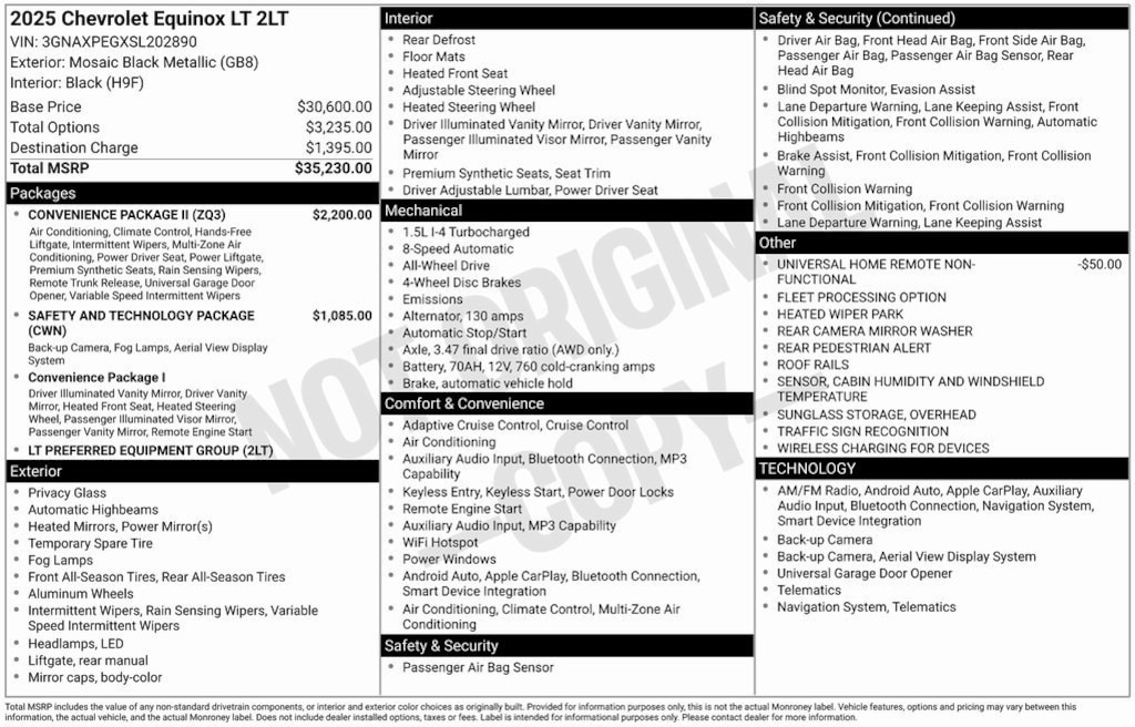 Recent Arrival! Mosaic Black Metallic 2025 Chevrolet Equinox LT AWD. 24/29 City/Highway MPG