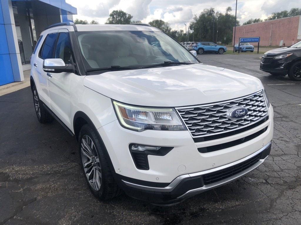 Recent Arrival! White Platinum Metallic Tri-Coat 2018 Ford Explorer Platinum 4WD, 12 Speakers, 2nd Row Bucket Seats w/Power-Assist Fold, 2nd Row Console, 3rd row seats: split-bench, 4-Wheel Disc Brakes, ABS brakes, Adjustable pedals, Air Conditioning, Alloy wheels, AM/FM radio: SiriusXM, AppLink/Apple CarPlay and Android Auto, Auto High-beam Headlights, Auto tilt-away steering wheel, Auto-dimming door mirrors, Auto-dimming Rear-View mirror, Automatic temperature control, Brake assist, Bumpers: body-color, CD player, Compass, Delay-off headlights, Driver door bin, Driver vanity mirror, Dual front impact airbags, Dual front side impact airbags, Electronic Stability Control, Emergency communication system: SYNC 3 911 Assist, Equipment Group 600A, Exterior Parking Camera Rear, Four wheel independent suspension, Front anti-roll bar, Front Bucket Seats, Front Center Armrest, Front dual zone A/C, Front fog lights, Front reading lights, Fully automatic headlights, Garage door transmitter, Genuine wood dashboard insert, Genuine wood door panel insert, Heated door mirrors, Heated front seats, Heated rear seats, Heated steering wheel, Illuminated entry, Knee airbag, Lane Departure Warning System, Leather steering wheel, Low tire pressure warning, Memory seat, Navigation System, Nirvana Multi Contour Leather Cooled Bucket Seats, Occupant sensing airbag, Outside temperature display, Overhead airbag, Overhead console, Panic alarm, Passenger door bin, Passenger vanity mirror, Pedal memory, Power door mirrors, Power driver seat, Power Liftgate, Power moonroof, Power passenger seat, Power steering, Power windows, Premium audio system: Sony, Radio data system, Radio: Premium Sound from Sony, Rain sensing wipers, Rear air conditioning, Rear anti-roll bar, Rear reading lights, Rear seat center armrest, Rear window defroster, Rear window wiper, Remote keyless entry, Roof rack: rails only, Security system, Speed control, Speed-sensing steering, Speed-Sensitive Wipers, Split folding rear seat, Spoiler, Steering wheel memory, Steering wheel mounted audio controls, Tachometer, Telescoping steering wheel, Tilt steering wheel, Traction control, Trip computer, Turn signal indicator mirrors, Variably intermittent wipers, Ventilated front seats, Wheels: 20 Bright Machined Face Aluminum.