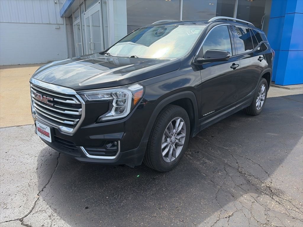 New Price! Ebony Twilight Metallic 2023 GMC Terrain SLT AWD. 24/28 City/Highway MPG